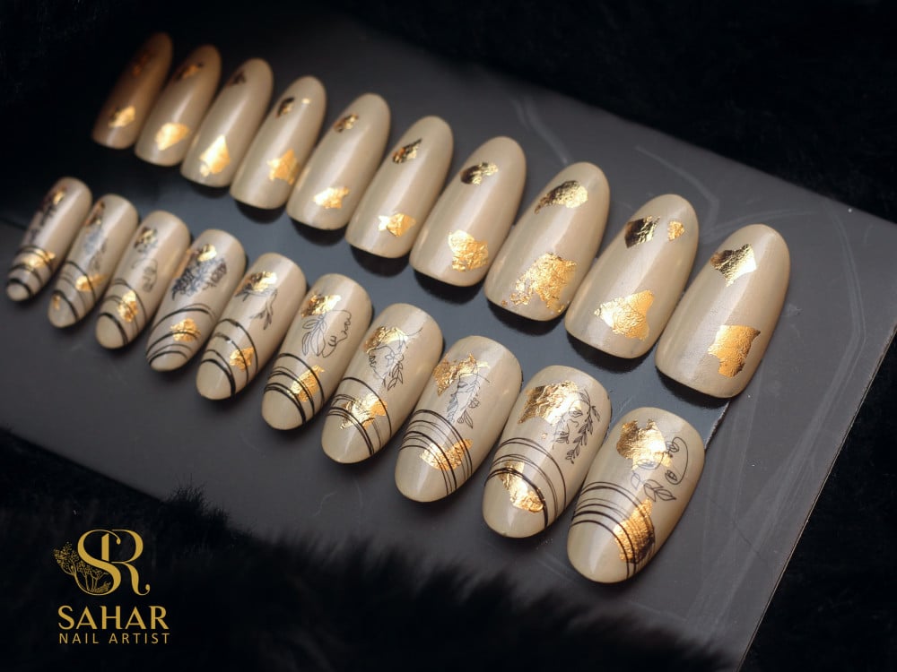 •العلبة تحتوي على 10 اظافر مرسومة و 10 أظافر سادة تقومين بتنسيقها حسب ذوقك.